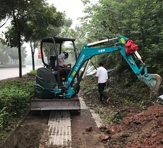 2.小型挖掘机进入施工现场后,驾驶员应先观察工作面地质及四周环境情况,挖掘机旋转半径内不得有障碍物,以免对车辆造成划伤或损坏。